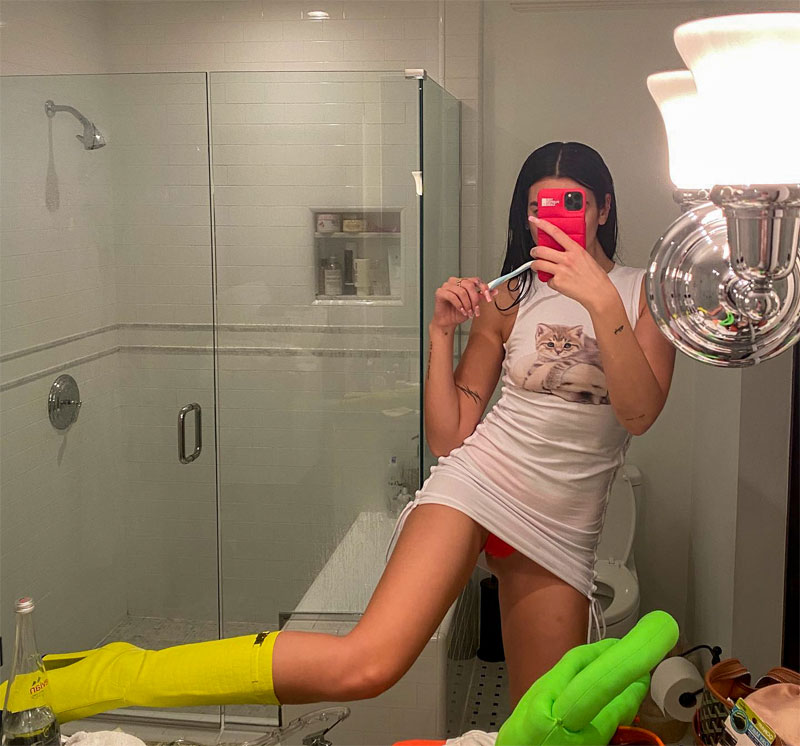 Dua Lipa Pink Pantie Upskirt in Mirror Selfie