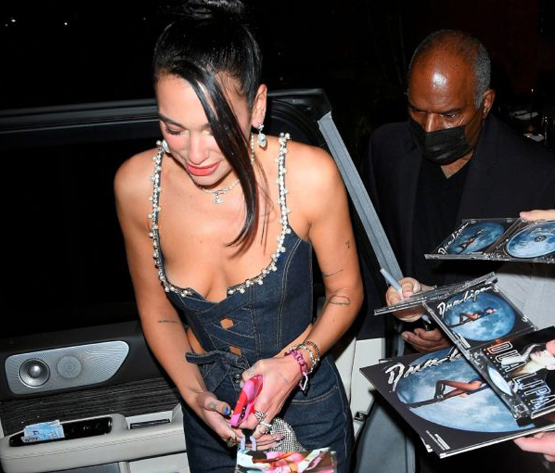 Dua Lipa Braless In A Denim Dress