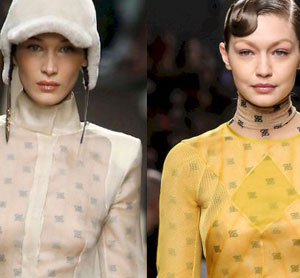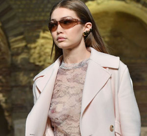 Gigi Hadid on the Catwalk in a Sheer Checked Blouse