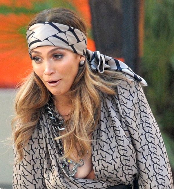 Jennifer Lopez Slutty Outfit on Movie Shoot