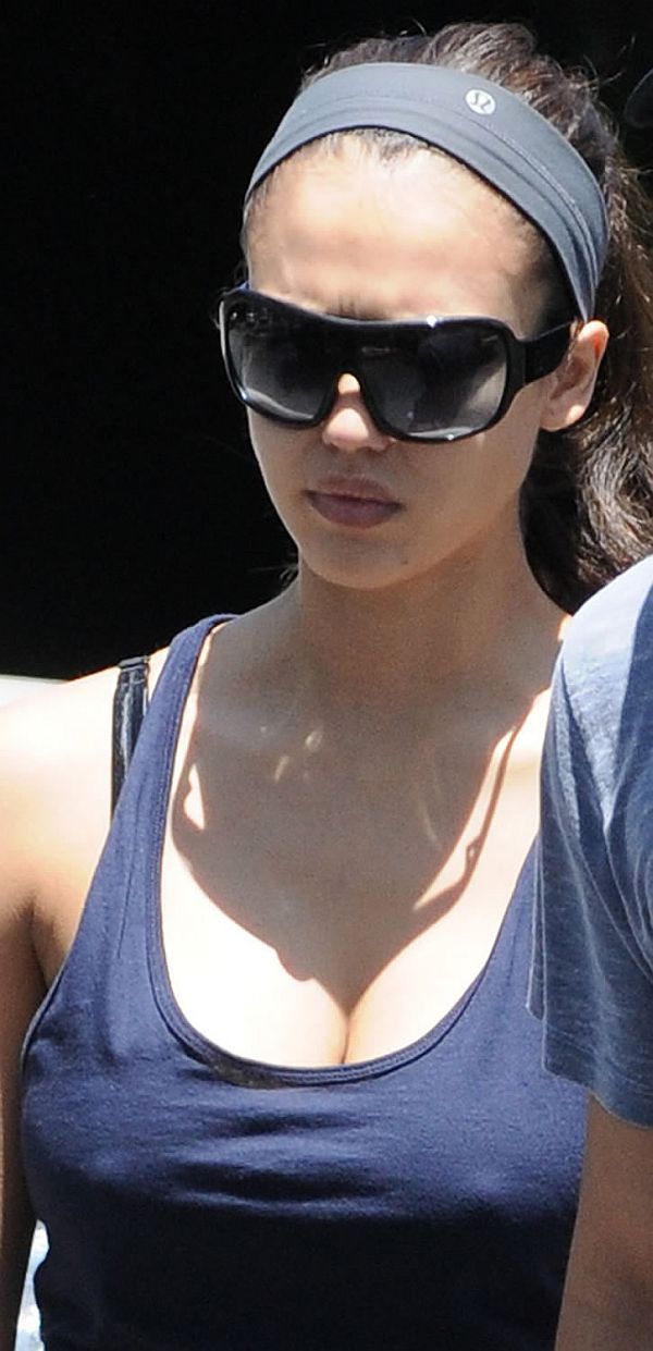 Jessica Alba Bra Can’t Hold Hard Nipples