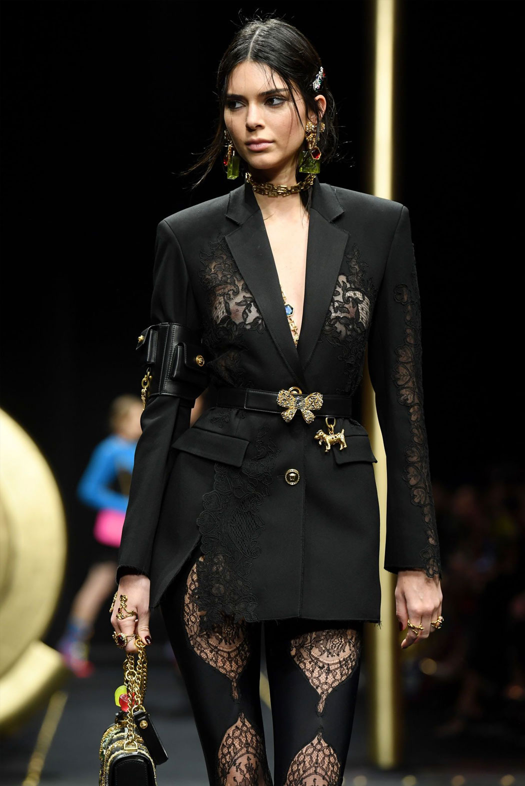 Kendall Jenner Breasts in Windowed Jacket on the Runway