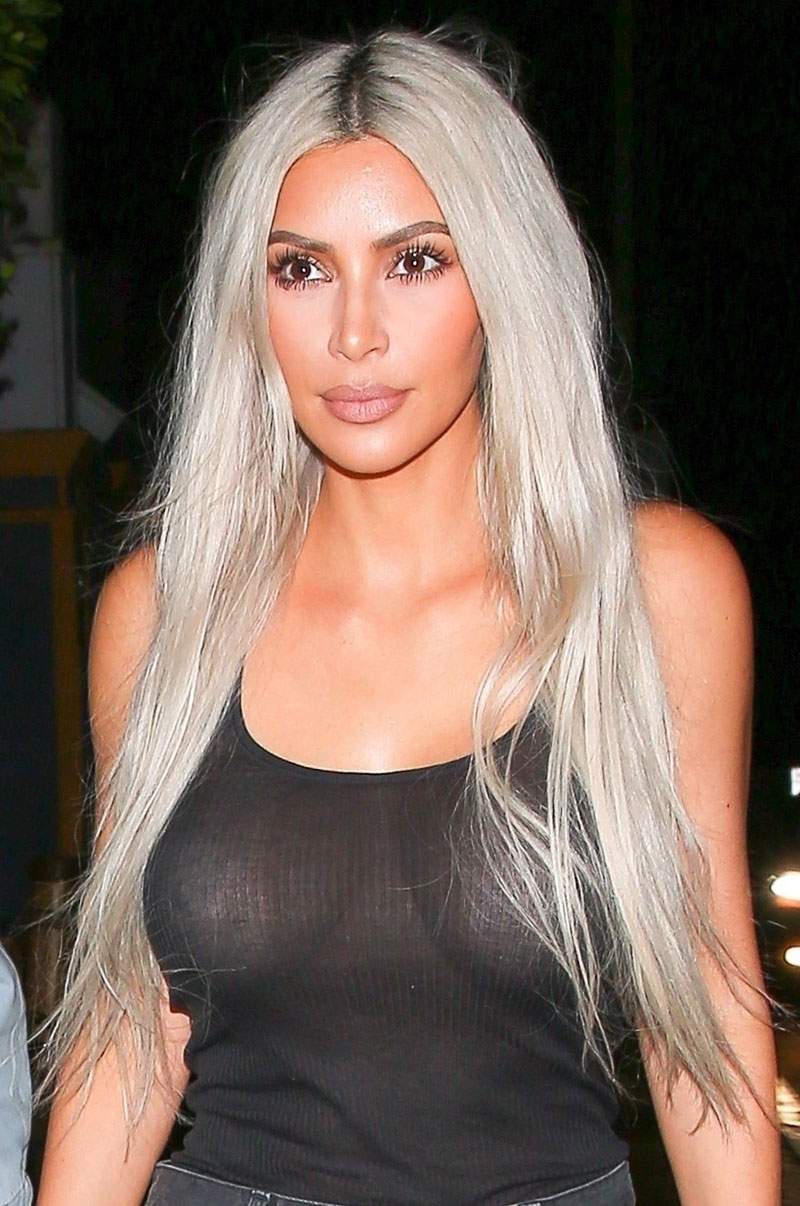 A Blonde Kim Kardashian Braless in See Through Black Wifebeater