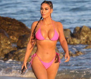 Kim Kardashian Wet in See-Through Wet T-Shirt