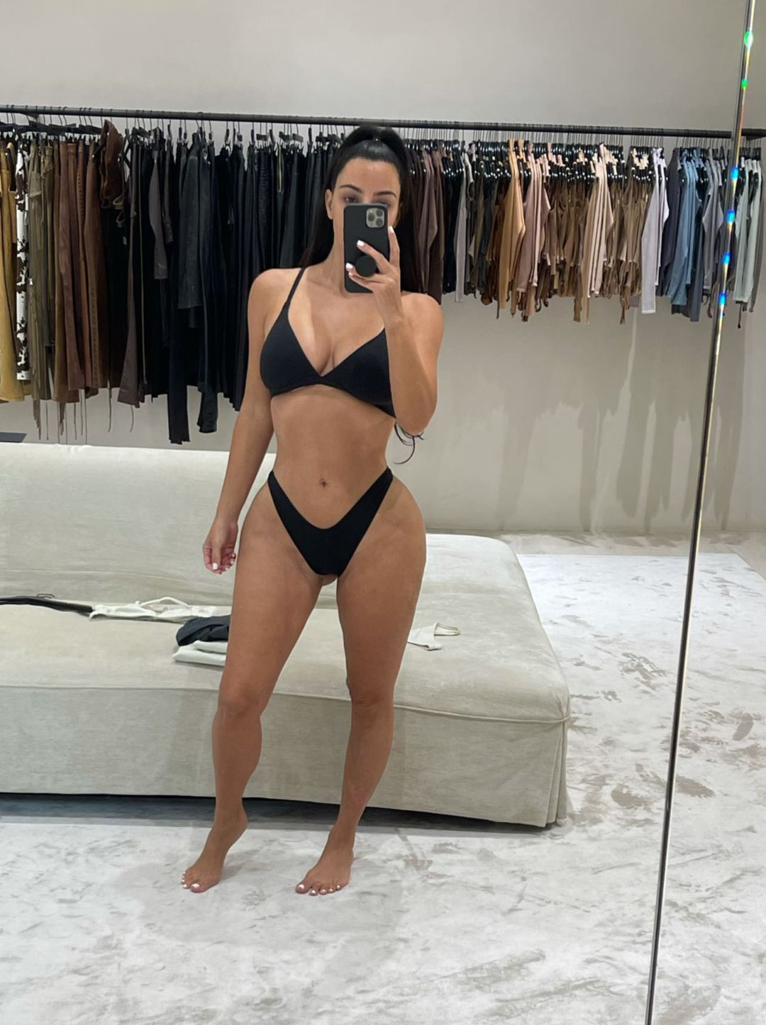 Kim Kardashian in Totally See Through Black Mesh Outfit