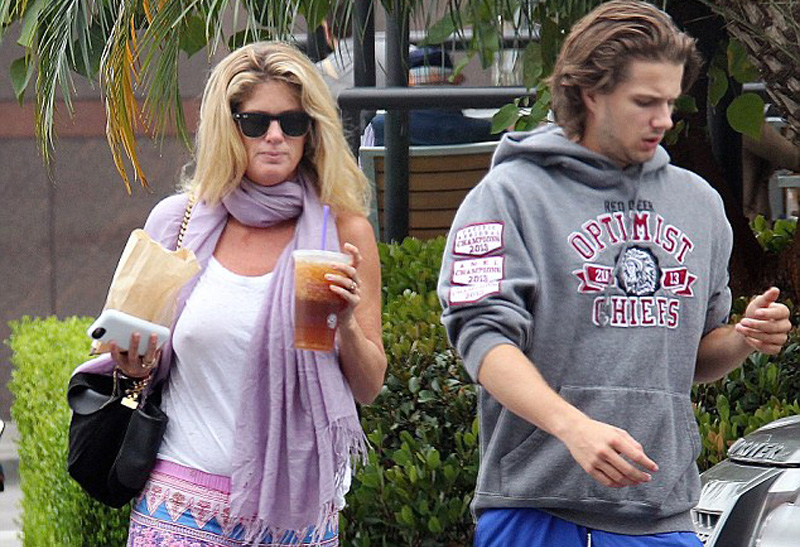 Rachel Hunter Braless in Sheer Blouse on the Street