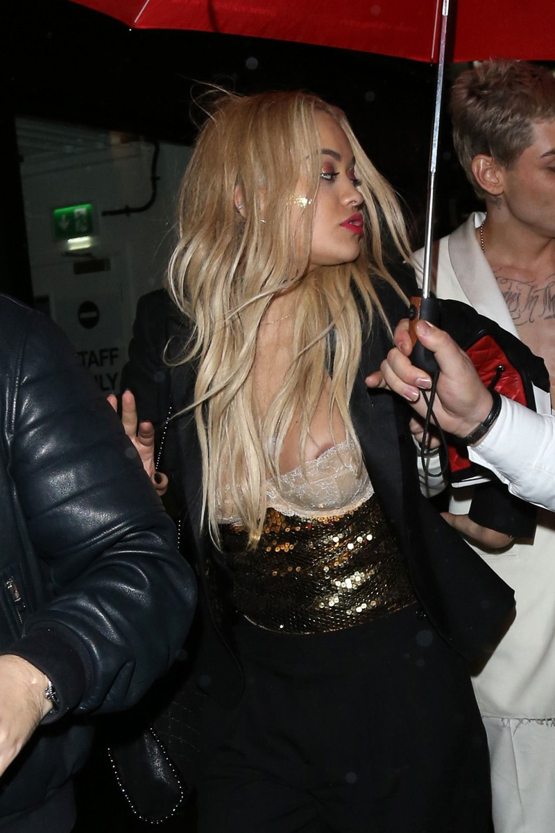 Rita Ora Slips Nipple Tape in her See Through Black Bra