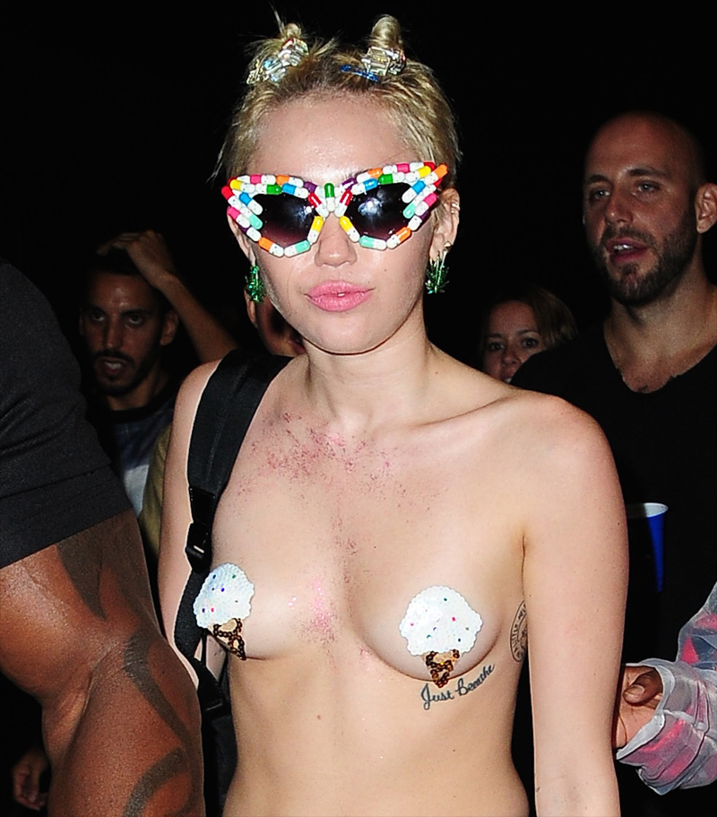 Miley Cyrus Flaunting Her Boobs And Nips Outdoor