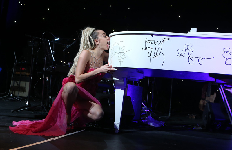 Miley Cyrus Pink Pantie Upskirt while Licking a Piano